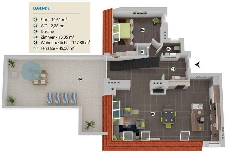 mit virtual Stageing (Ergänzung von Möbel und Einrichtung in leerer Wohnung)